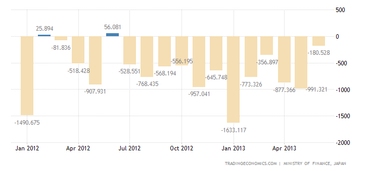 http://www.businessweek.com/news/2013-05-30/japan-output-exceeds-estimates-in-boost-for-abe-revival-campaignI laugh when I read this stuff. They've just managed to smash their currency by 27% and then claim a surge in things like GDP (3.6% annualised) and output. (production +1.7%) That's like having a liquidation sale and saying sales are up but then not disclosing your input costs went ballistic and margins got crushed.