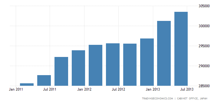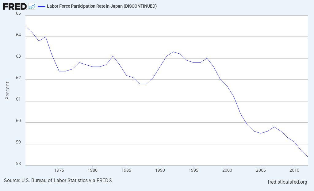 Whats with the BS employment figures. Labor force participation has been dropping for years (mid 90's) because Japans population is contracting and to magnify that so is the workforce as the population ages. Last 5 employment figures; 4.3%, 4.2%, 4.3%, 4.1%, 4.1%