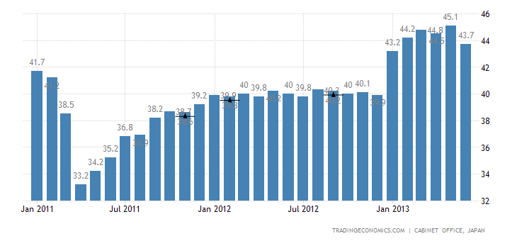 …The effects of Abenomics are appearing little by little,” said Junko Nishioka, chief economist at Royal Bank of Scotland Group Plc in Tokyo and a former official at the central bank. “Wages, mainly bonuses, will probably be on an upward bias as corporate profits are recovering. The improvement in wages will probably support consumption.” Gross domestic product last quarter rose an annualized 3.5 percent, the biggest gain in a year, the Cabinet Office said on May 16. Private consumption, which makes up 60 percent of the economy, contributed 2.3 percentage points to the increase… Employment rose by 40,000 jobs in April, and the labor force participation rate was at 59.6 percent from 58.9 percent in March, according to the government statistics bureau…